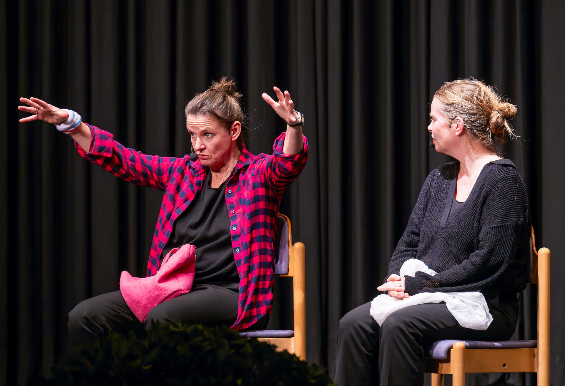 Wer glaubt, dass ginge nicht, hat sich getäuscht. Denn die beiden Frauen auf der Bühne verweigern sich dem platten, derben Witz und plaudern ganz unverfänglich über Wünsche am Lebensende – etwa wie sie sich ihr Begräbnis vorstellen, wie der Leichenschmaus aussehen soll. Sie bauen Stichworte aus dem Publikum in das Programm ein und es ist urkomisch, wenn sie am Ende „dieses berühmte Elsenfelder Lied“ singen, in dem es etwa um Seifenblasen geht. Das Publikum dankte es den beiden Darstellerinnen am Ende mit stehenden Ovationen.
