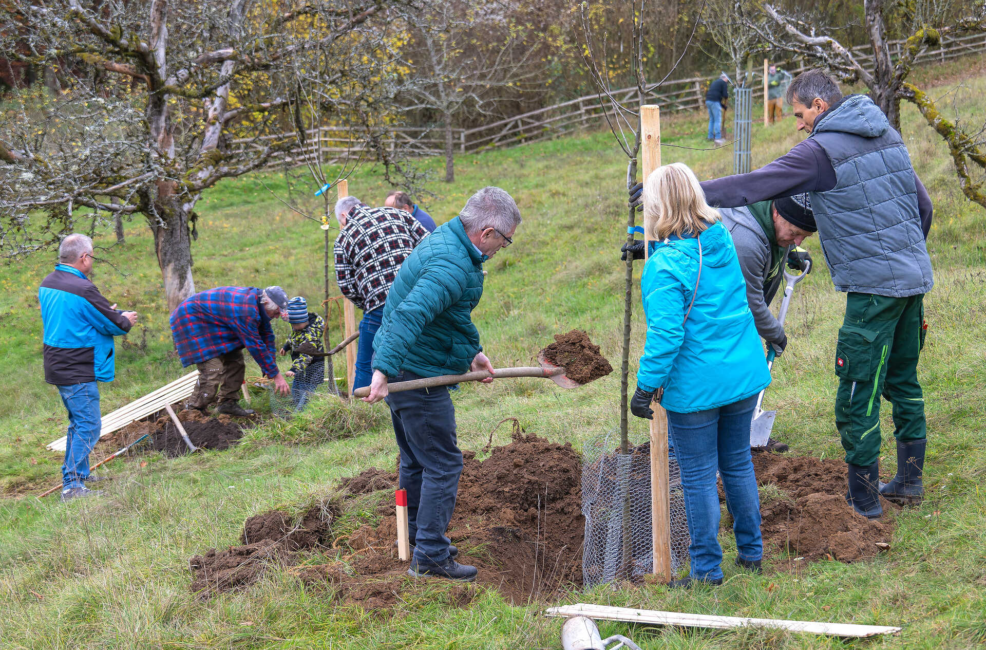 An 40 Pflanzlöchern in der Streuobstanlage „Amerika“ waren die Gäste der LPV-Jubiläumsfeier bei der Arbeit. Foto: Winfried Zang