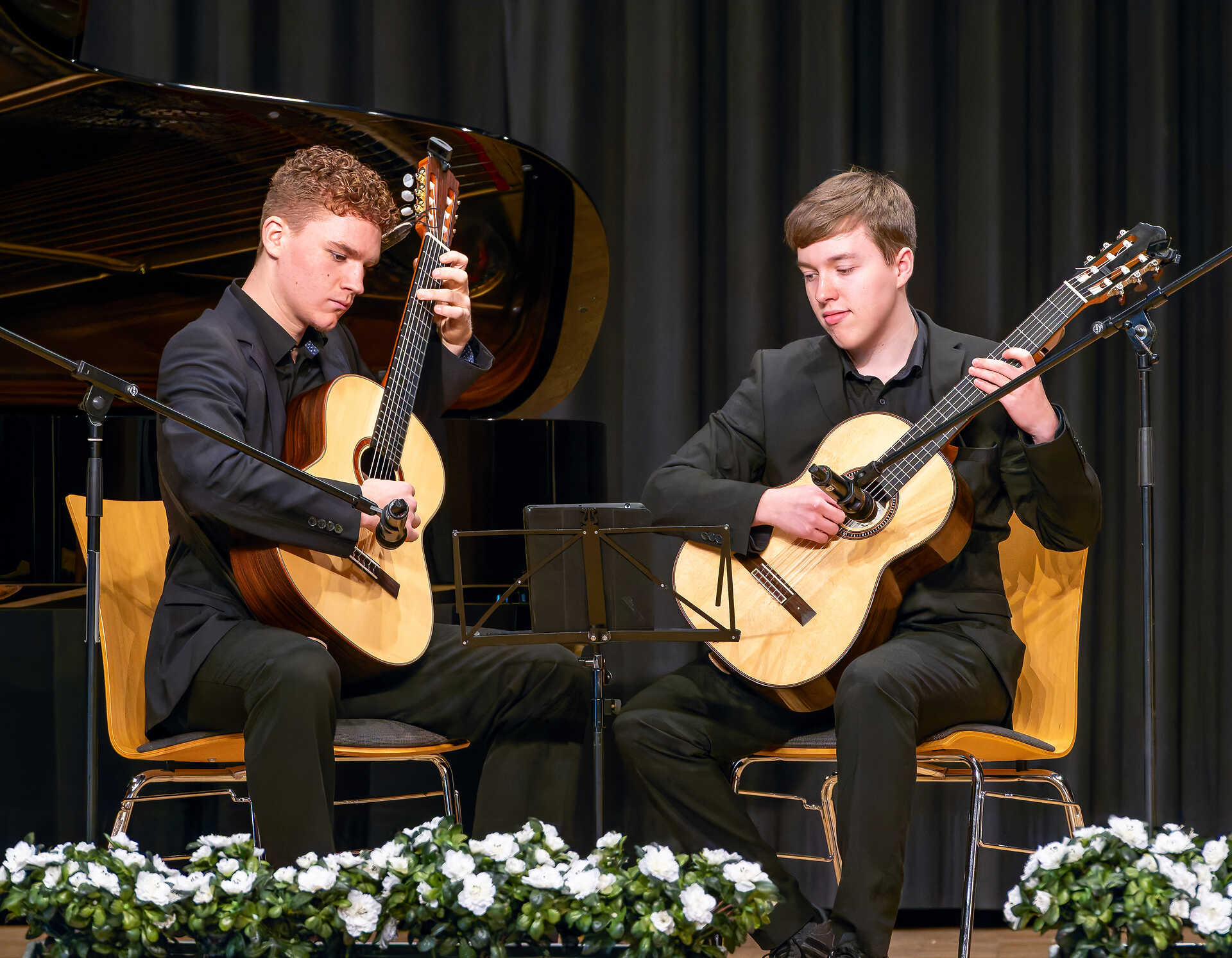 Zu den musikalischen Höhepunkten des Preisträgerkonzerts gehörte der Vortrag des Gitarrenduos Jona Brand (rechts) und Vincent Müller. Foto: Winfried Zang -
