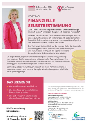 Der Vortrag wirft einen Blick auf die zentrale Rolle, die finanzielle Unabhängigkeit für das Wohlbefinden von Frauen spielt und warum es so wichtig ist, die eigene finanzielle Gesundheit und Selbstbestimmung zu stärken.