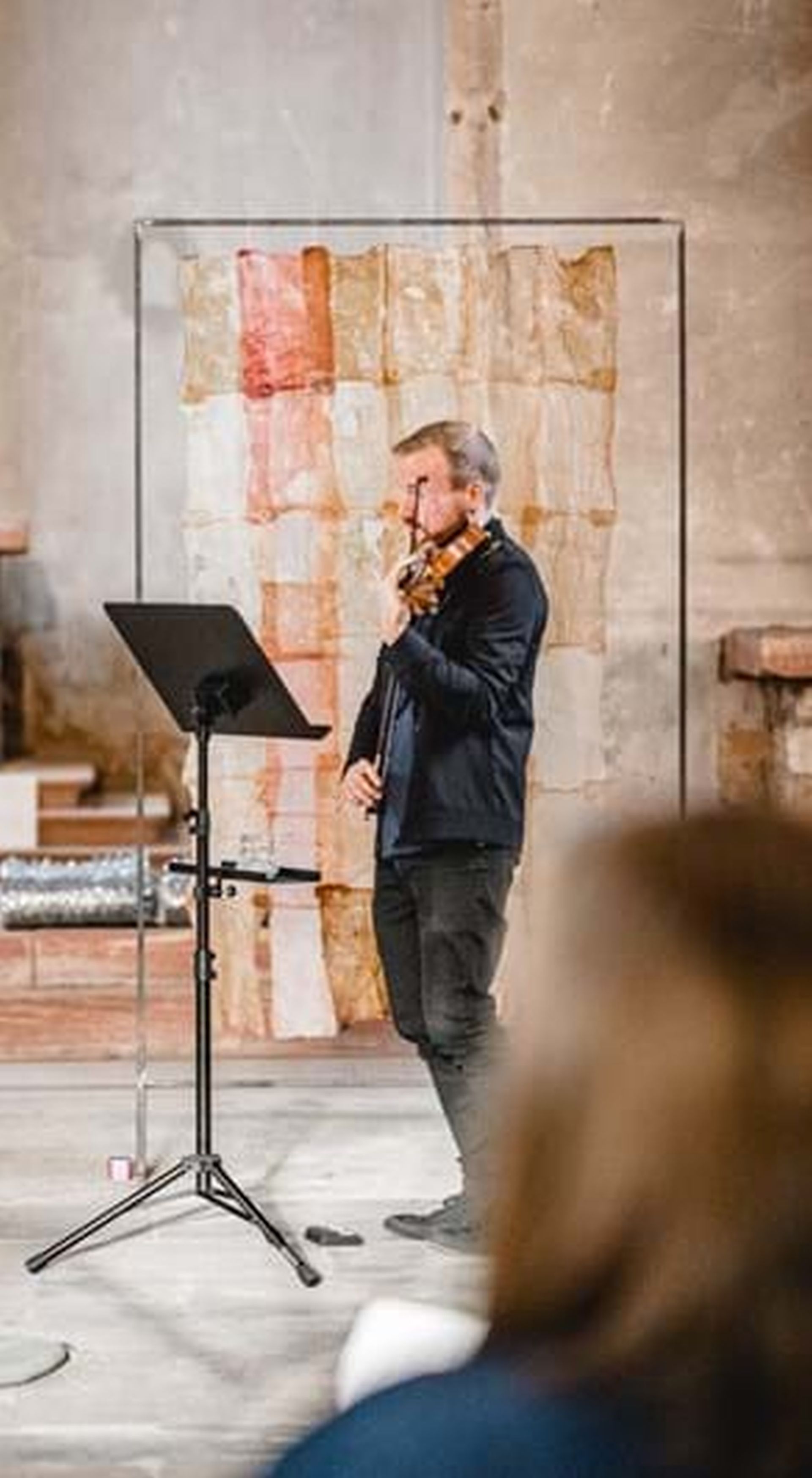 ZAK Musiker:innen und Sound Spezialisten agieren gemeinsam. Die Musiker:innen spielen Musik des 20./21.Jh.. U.a. wird ein Trio für Violine, Akkordeon & Klavier, das Prof. Violeta Dinescu – Monika Thiery, Gisela Schneider und Alma Flammersberger gewidmet hat, an diesem Abend uraufgeführt. Zwischen den Kompositionen füllt elektronische Musik und der Klang eines Modular Sound System den Kirchenraum.