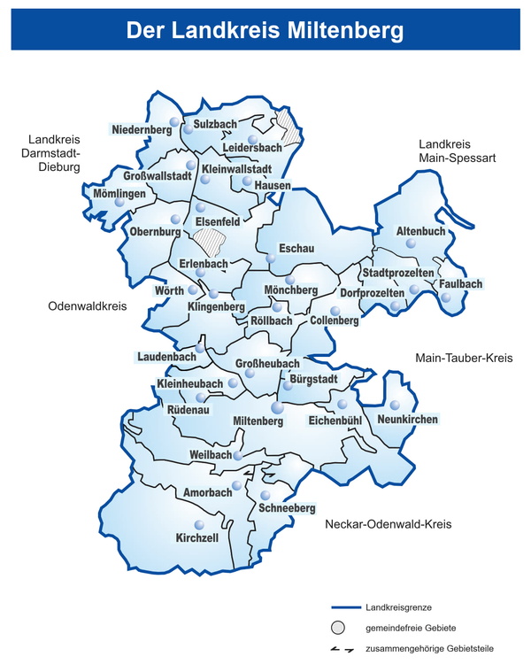 Seit der Gebietsreform, die im Mai 1978 abgeschlossen wurde, bilden 32 Gemeinden den Landkreis Miltenberg.