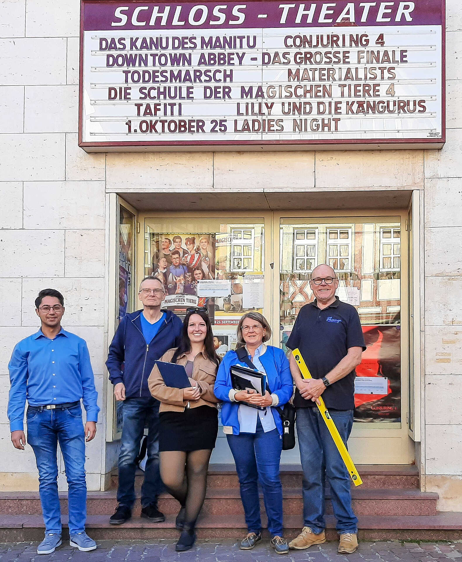 Dieter Lebert (Inhaber des Kinos), Jenni Kranich (Theaterleitung), Nadja Schillikowski (kommunale Behindertenbeauftragte des Landkreises), VdK-Kreisgeschäftsführer Pierre Lieske sowie der ehrenamtlich tätige Berater für Barrierefreiheit, Christian Lorenz, nahmen daran teil. Gemeinsam wurden die Räume des Kinos begangen und bestehende Zugänge, Wegeführungen und Nutzungsmöglichkeiten aus Sicht der Barrierefreiheit betrachtet, aber auch die barrierefreie Gestaltung der Homepage stand im Fokus.