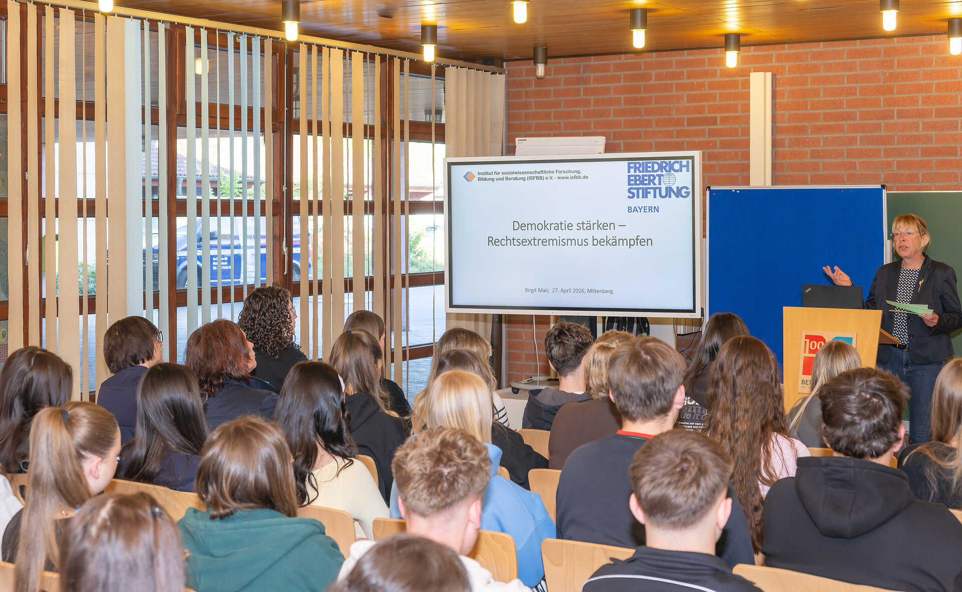 „Demokratie stärken – Rechtsextremismus bekämpfen“: Nach einer Station in der Berufsschule Obernburg ist die Ausstellung der Friedrich-Ebert-Stiftung über die Bedeutung der Demokratie für die Gesellschaft nun bis einschließlich 7. Mai auch in der Berufsschule am Standort Miltenberg zu sehen.