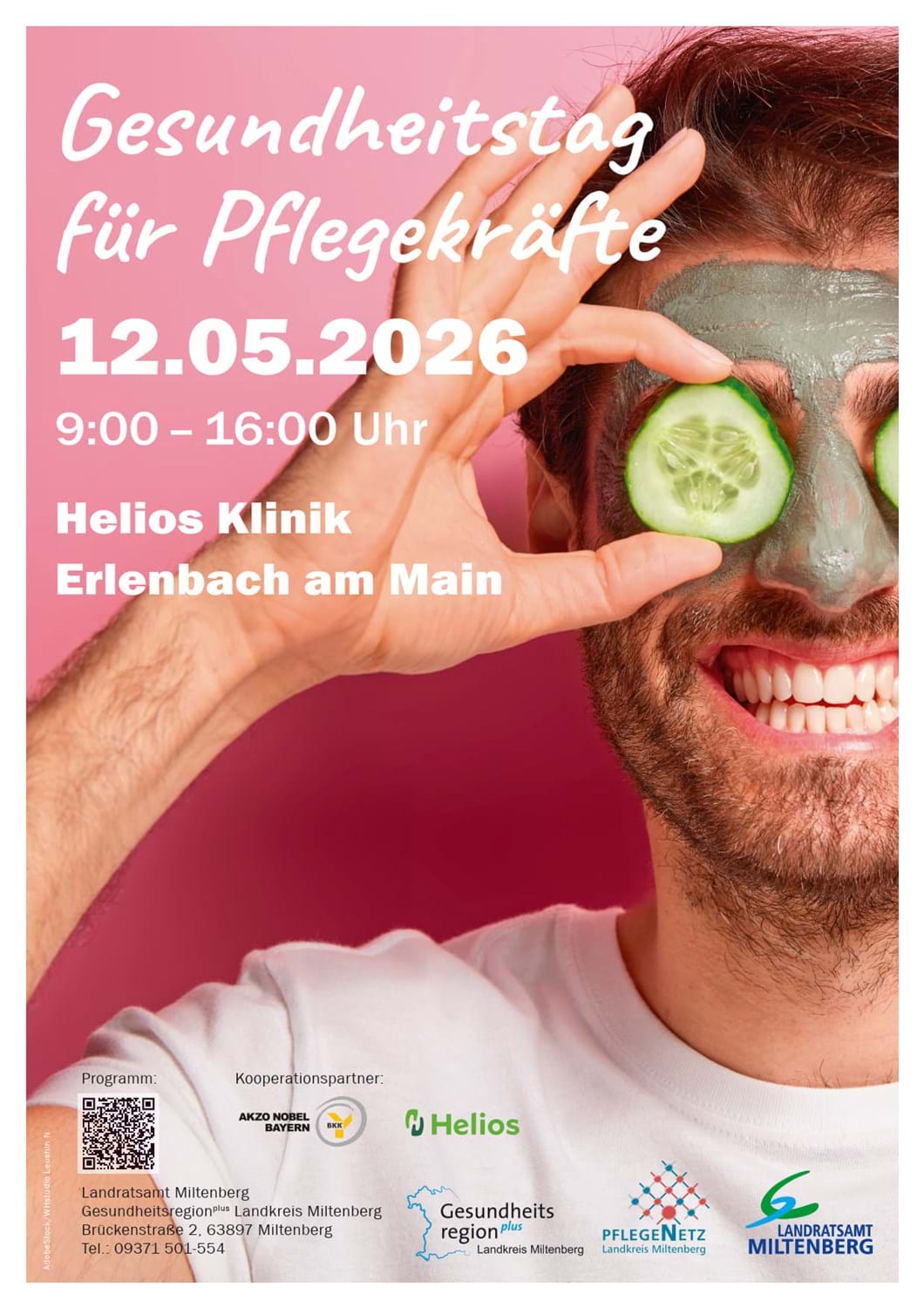 Unter dem Motto „Pflege bedeutet Fürsorge – oft für andere, viel zu selten für sich“ findet am Dienstag, 12. Mai, von 9 bis 16 Uhr ein Gesundheitstag für Pflegekräfte in der Helios Klinik Erlenbach statt. Organisiert wird die kostenlose Veranstaltung vom Landratsamt Miltenberg, dem PflegeNetz Miltenberg sowie der GesundheitsregionPlus Landkreis Miltenberg. Kooperationspartner sind die Helios Klinik Erlenbach und die BKK Akzo Nobel.