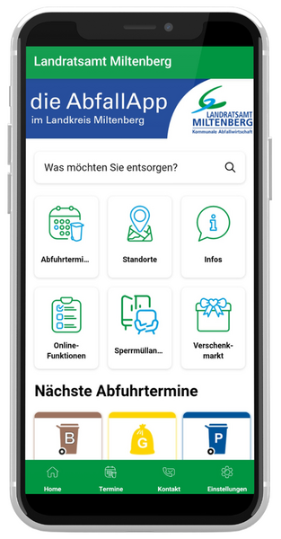 Mit der kostenlosen AbfallApp MIL verpasst man im Landkreis Miltenberg keinen Abfalltermin mehr! Die App erinnert zuverlässig an alle Abfuhrtermine der Restabfalltonne, der Biotonne, der Papiertonne und des Gelben Wertstoffsacks im Landkreis Miltenberg. Auch die Termine der mobilen Sammlungen für Problemabfälle sind dabei. Einfach Wohnort mit Ortsteil auswählen, Erinnerungswunsch einstellen und schon haben die Nutzerinnen und Nutzer die Müllabfuhr immer im Blick. Die AbfallApp ist ein Service der Kommunalen Abfallwirtschaft des Landkreises Miltenberg, zu finden in den Play Stores von Android oder iOS.